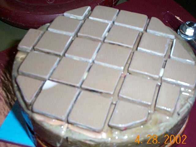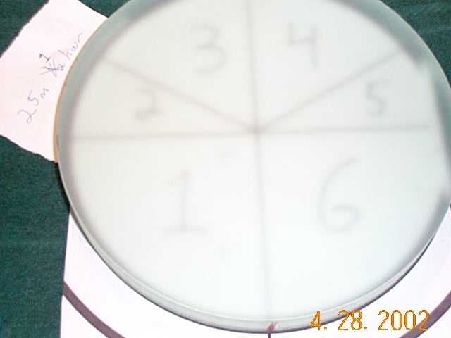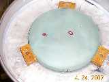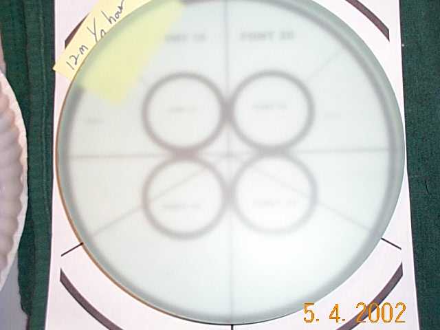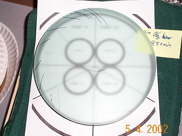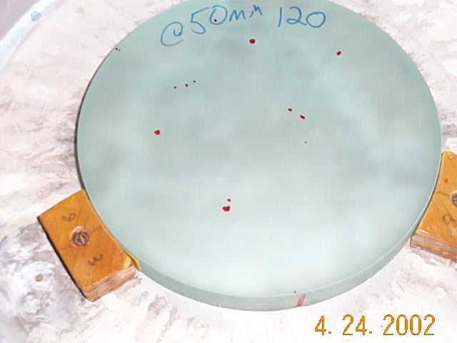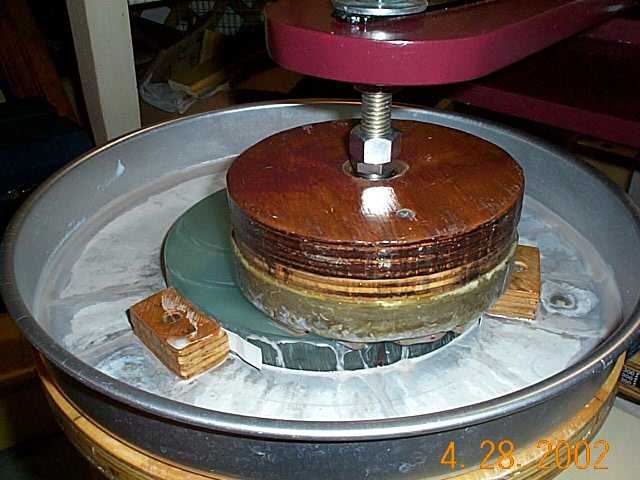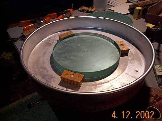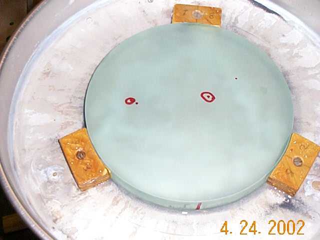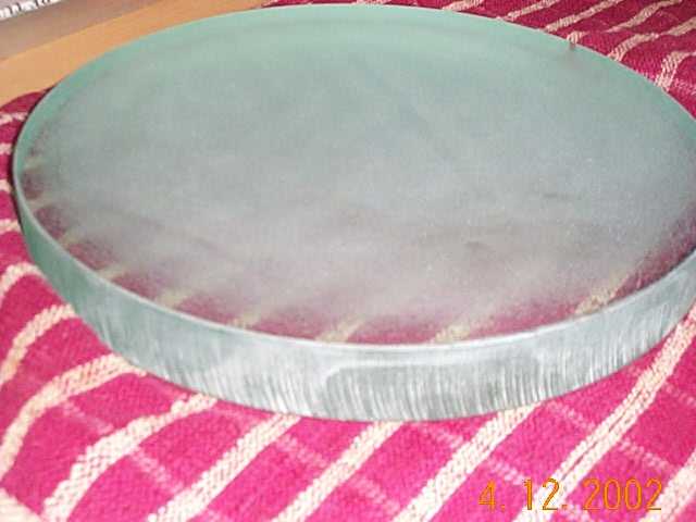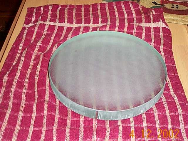 is the 8" piece of virgin glass on machine ready to be ground. The