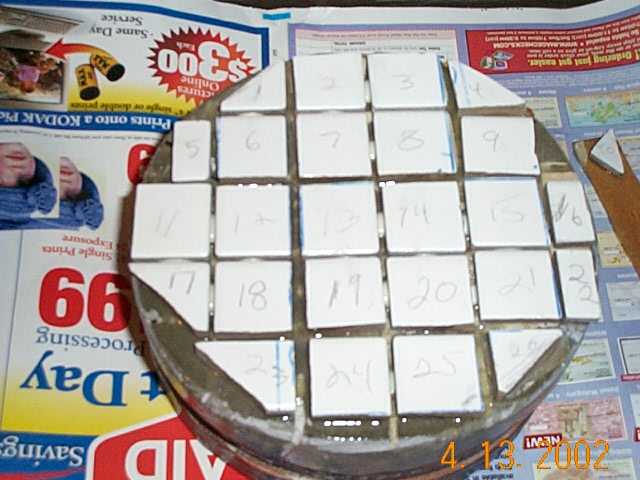 a several 80 grit wets until I seen all the tiles wearing evenly.