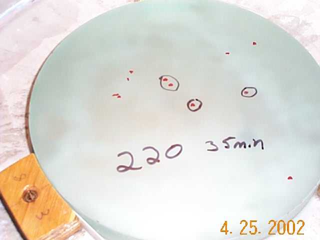 320 grit. For all of the rough an fine grinding the mirror-o-matic was