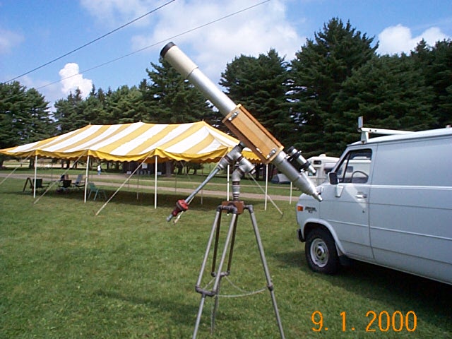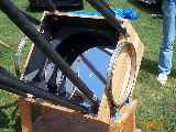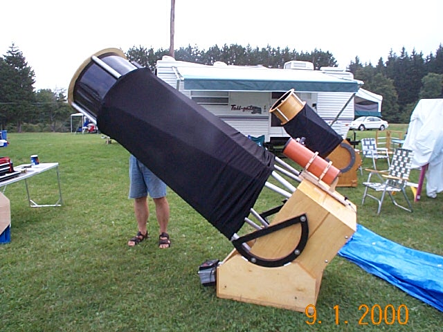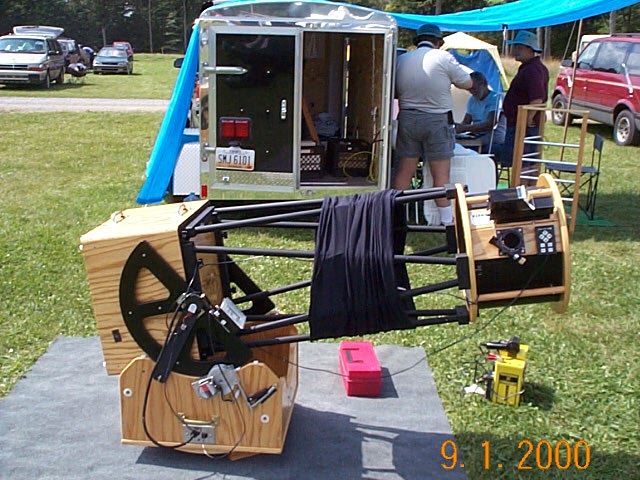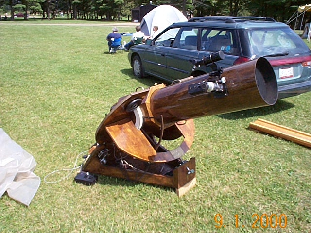 Tom's scope is a 24" F4.5. His altitude bearings are bicycle rims. Pretty clever.