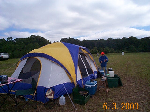 dcp00231.jpg A wet on the outside, dry on the inside tent the next morning. |